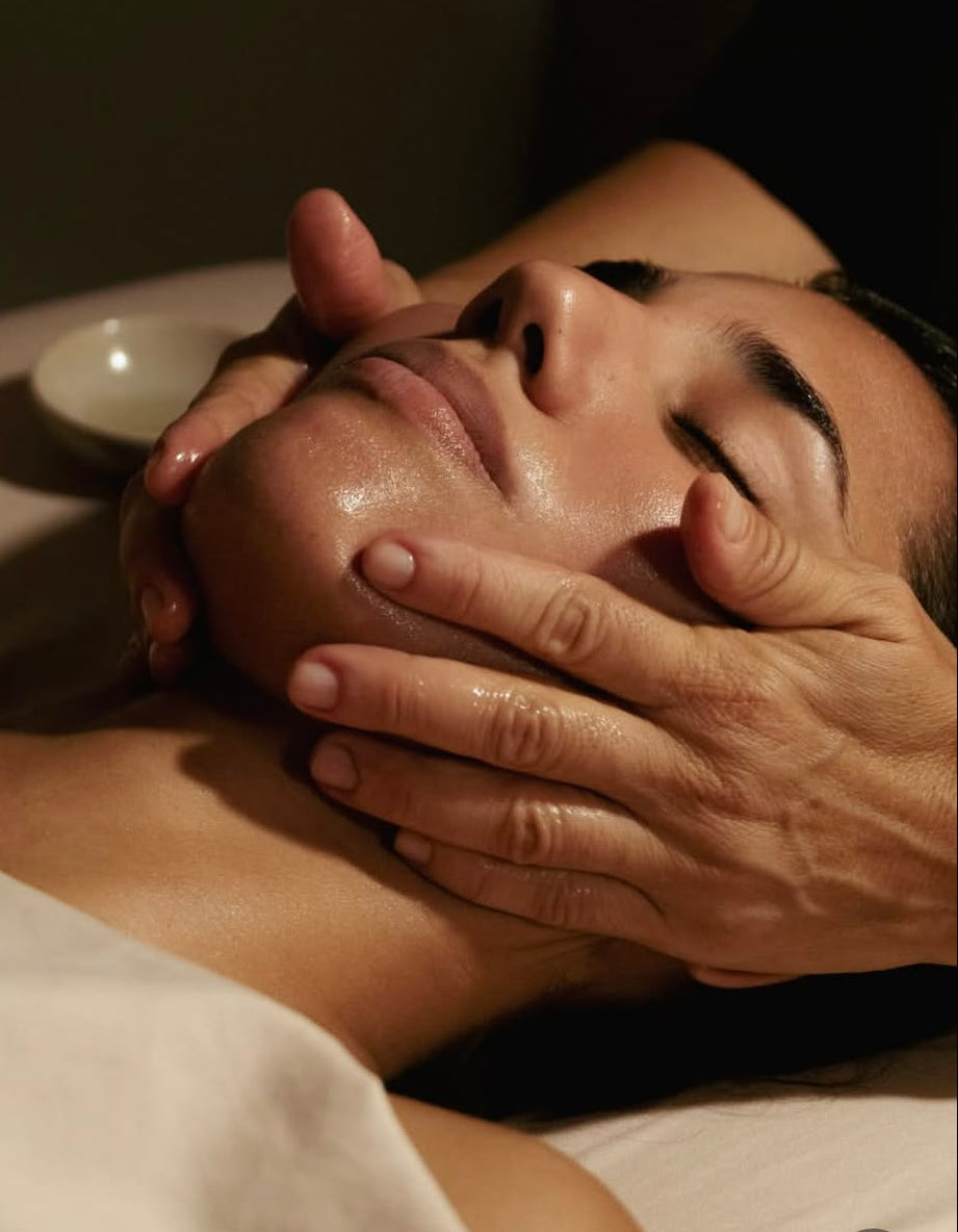 Buccal facial massage in Paia, Maui at Scape lifts, sculpts, and releases tension using Marie Veronique and local noni oils by Whispering Dragonfly. Experience deep facial rejuvenation.